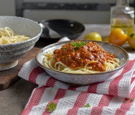 makaron, śmietanka, przyprawa, kurczak, borowiki, pieczarki